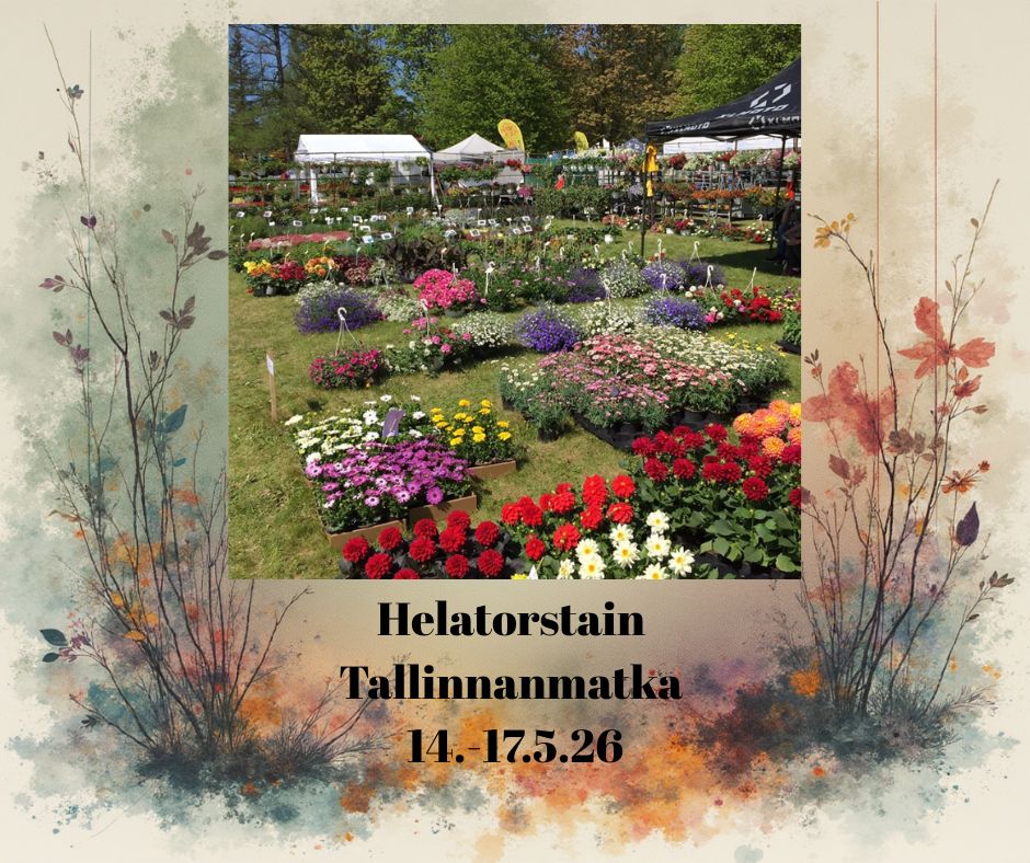 14.-17.5.26 Helatorstain hotellimatka Tallinnaan. Mahdollisuus käydä Turin kukkamarkkinoilla.