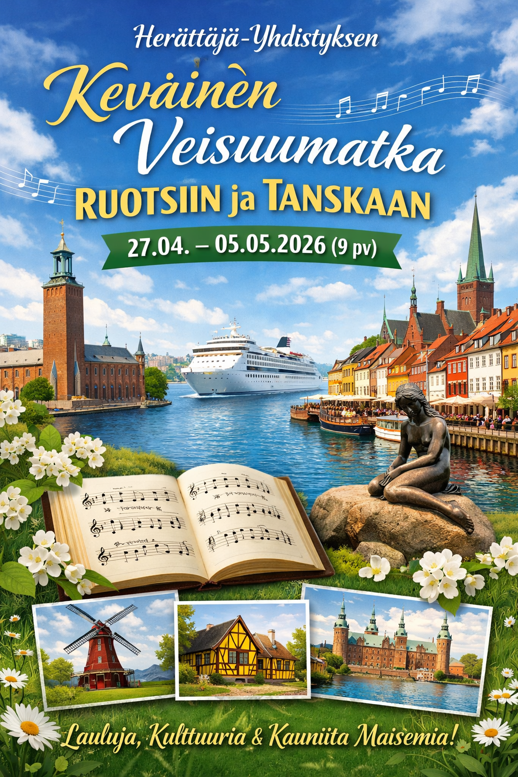Herättäjä-Yhdistyksen veisuumatkaa tehdään Simo Korkalaisen johdolla. Tule mukaan mukavaan porukkaan tutustumaan Ruotsin ja Tanskan kaupunkeihin. Kohteina mm. Göteborg, Kööpenhamina, Vadstenan luostari ja Tukholma.